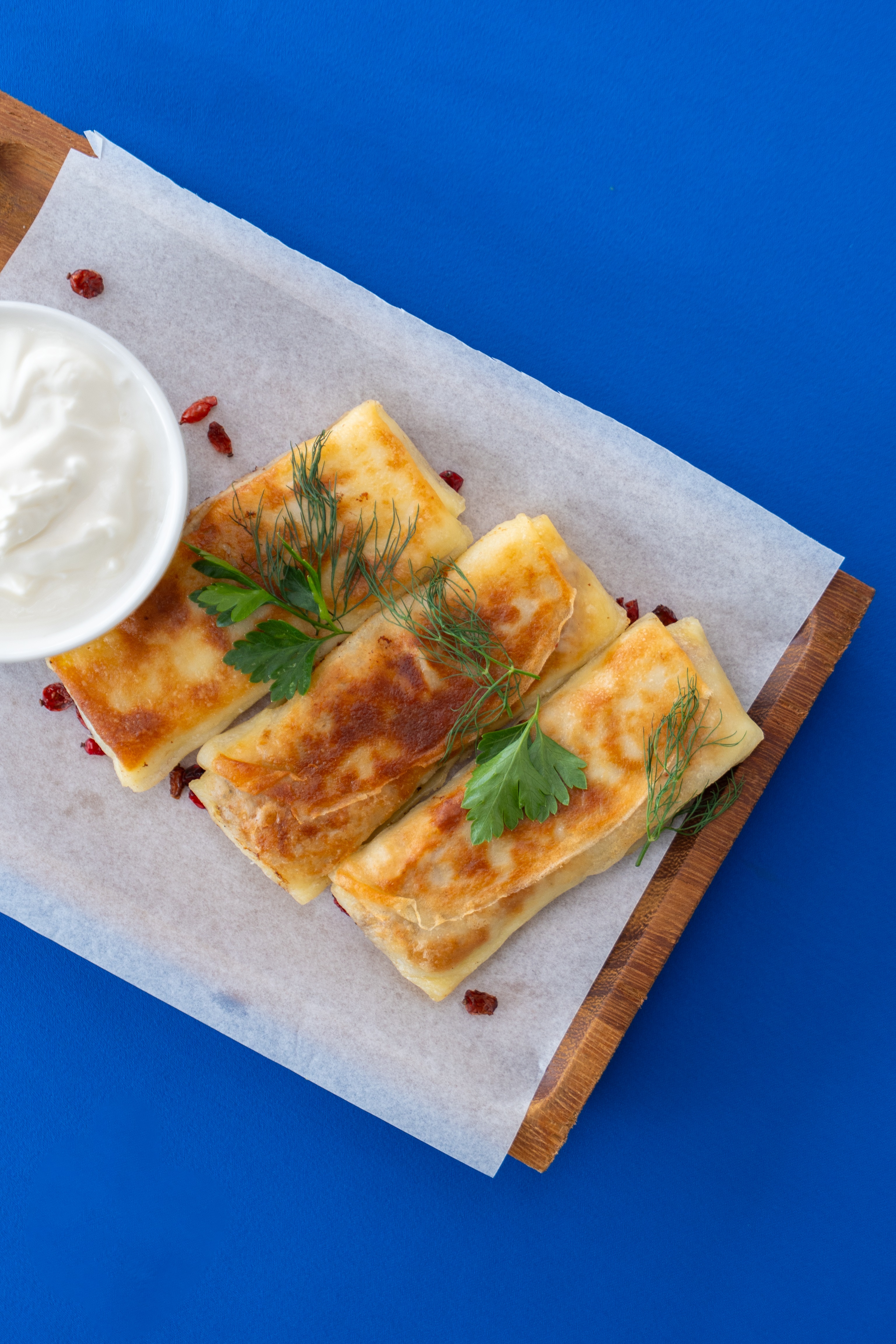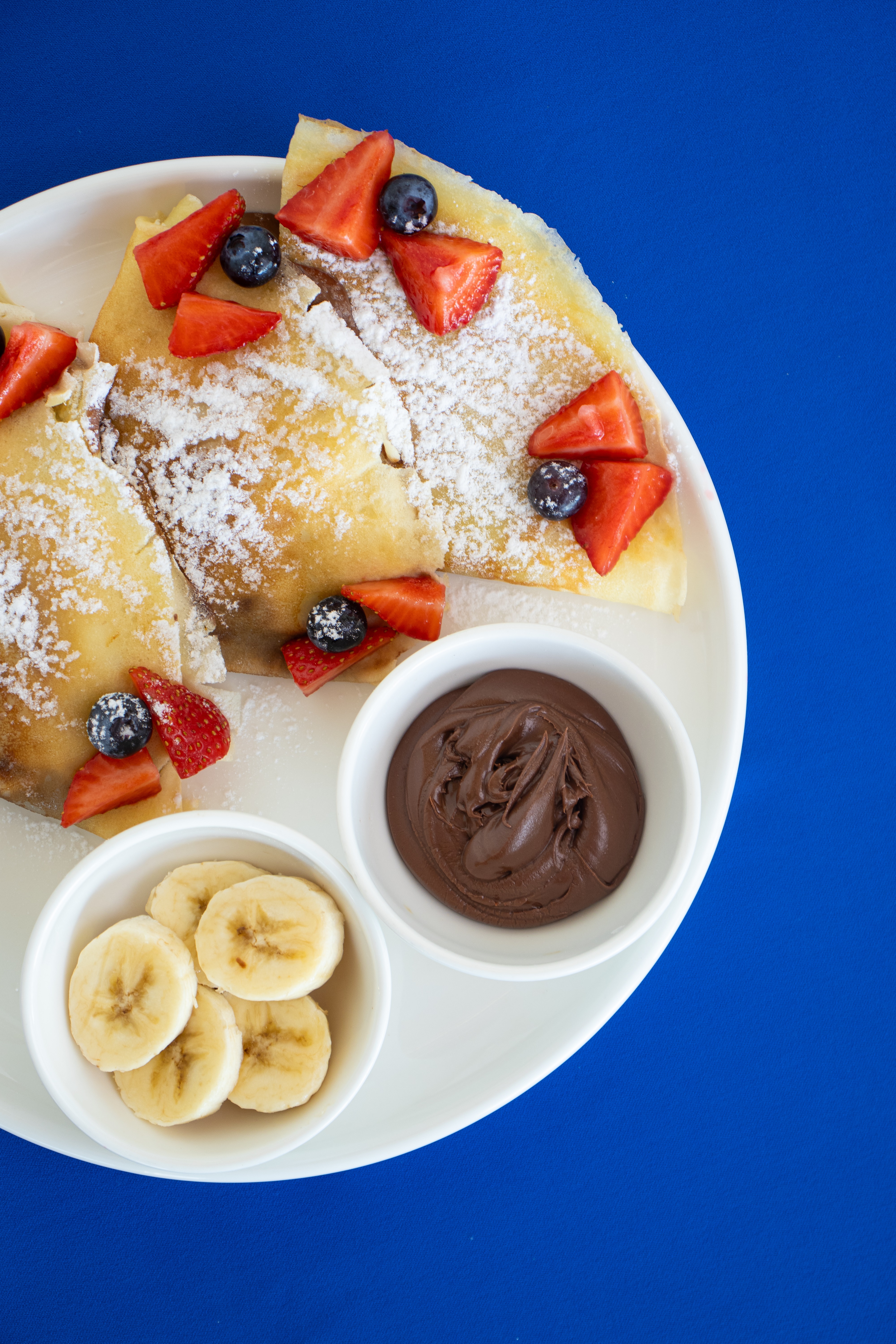კრეპი (კვერცხი, რძე, ფქვილი, ზეთი), ბანანი, შოკოლასი, ხილი