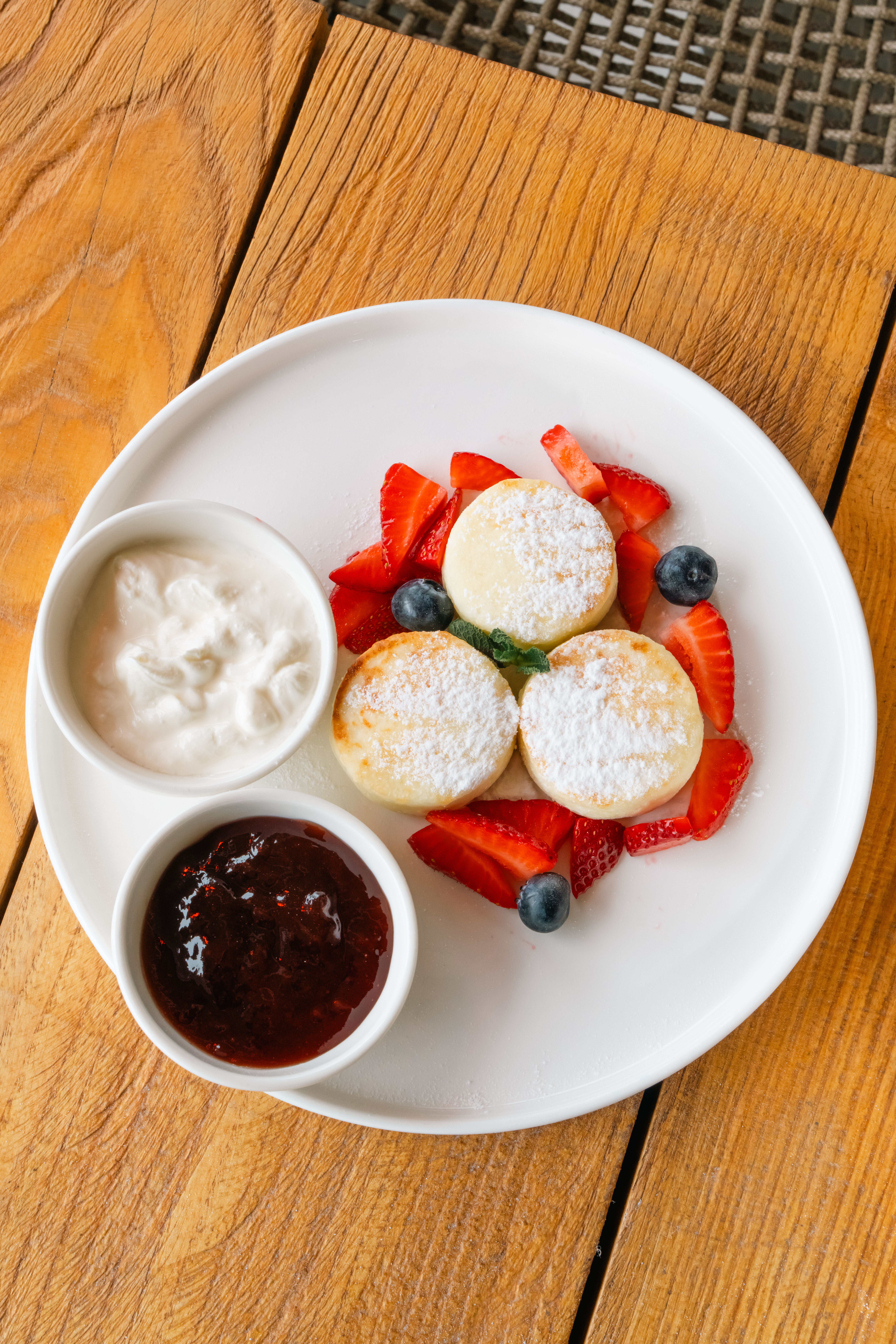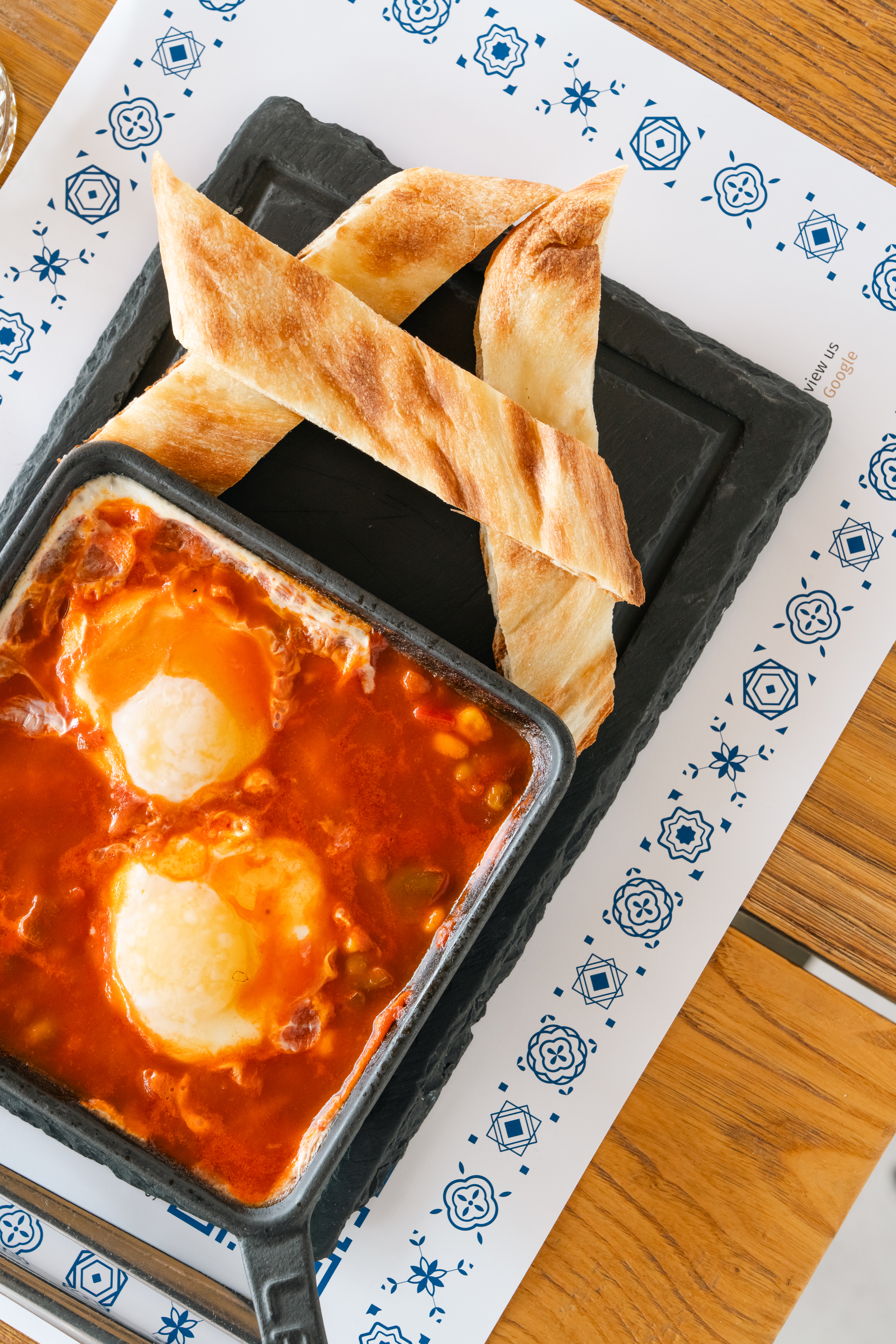 მოხარშული კვერცხი (პაშოტი), წითელი ხიზილალა, გამოყვანილი ორაგული, 1 კვერცხის ომლეტი, ერთი ტაფამწვარი, გაწურული მაწონი, შეფიცხული პური, არომატული კარაქი, ქართული ყველი, ისპანახის მუსი